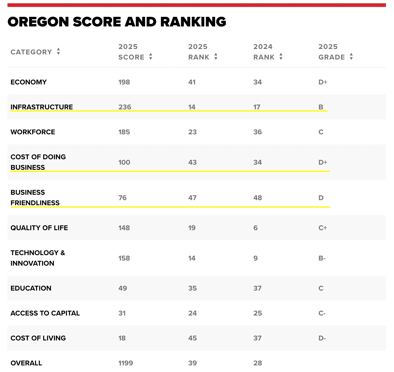 What is really interesting is how Oregon went from 34th in 2024 to 43rd in 2025 for cost of doing business. What changed from 2024 to 2025 to drop us down 9 rankings? Well! Let’s start with 2019.