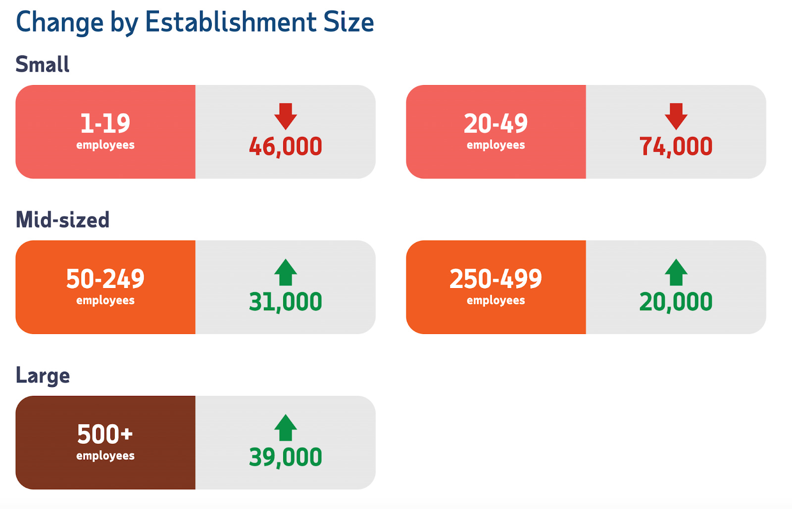 According to the ADP report, the economy lost 32,000 private sector jobs in November, specifically in manufacturing, professional and business services, information, and construction. The slowdown in November was led by small businesses. The impacts on small businesses, or “main street businesses,” are often early indicators of the macroeconomy, as they have less flexibility and resiliency to withstand turbulence. Between August-October, small businesses shed roughly 34,000 job per month on average. This is not good.